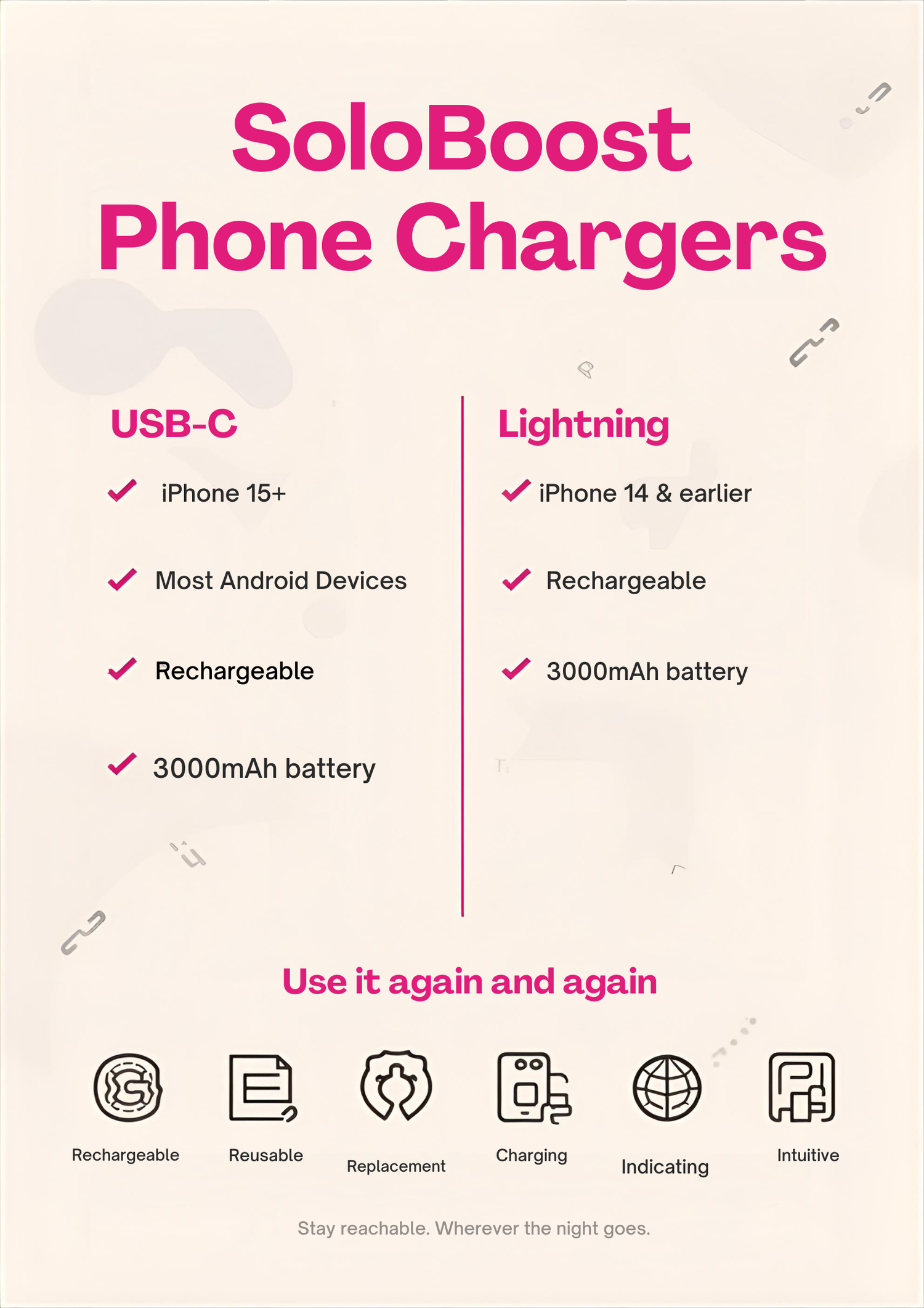 Whether you’re out at a festival, on the move, or caught in an emergency — SoloBoost ensures your phone never lets you down.